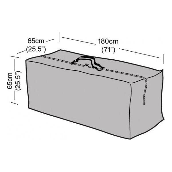De opbergtas heeft waterdichte naden en kan gebruikt worden tijdens een lange periode (b.v. in de winter of tijdens een reis) of om de tuinkussens te beschermen op een regenachtige dag in de zomer. De tas is bovenaan voorzien van een rits en handige draaglussen. De rits is zeer breed waardoor je er de kussens zeer vlot in en uit kan halen.