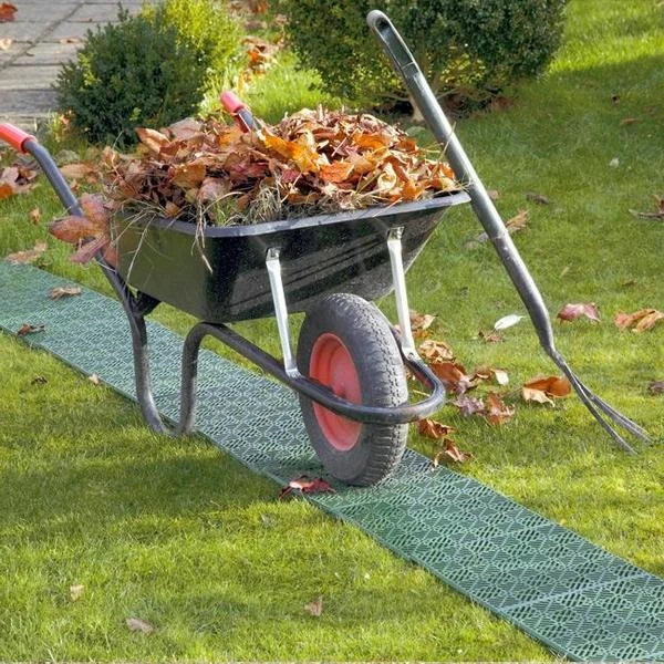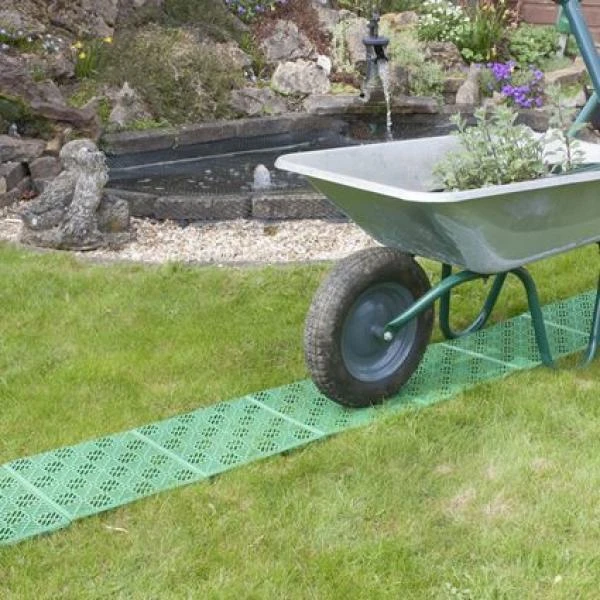 Een set van 5 rastertegels in kunststof als stevige ondergrond in de tuin. Gemakkelijk te monteren en overal inzetbaar: in de moestuin tot zelf op het kampeerterrein.